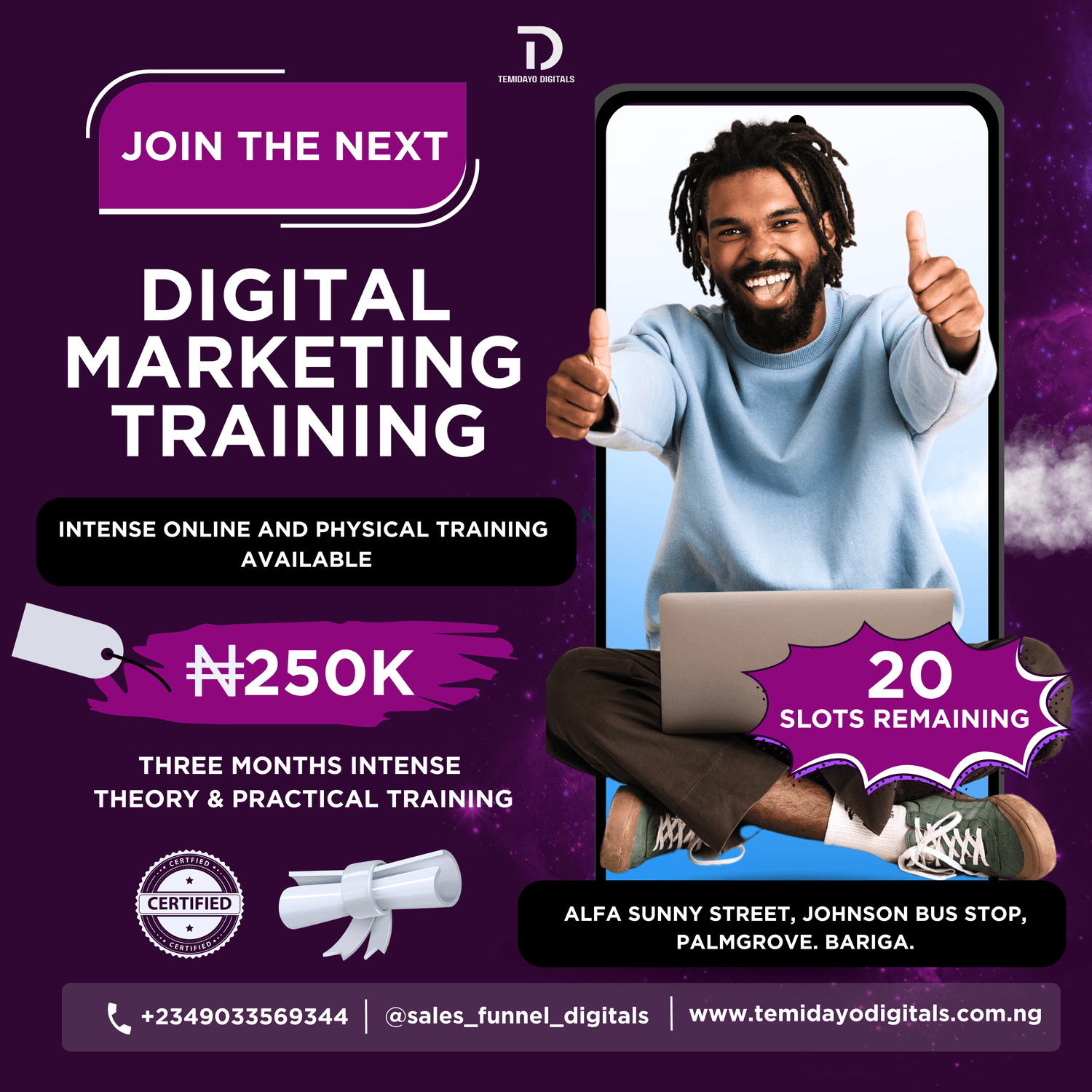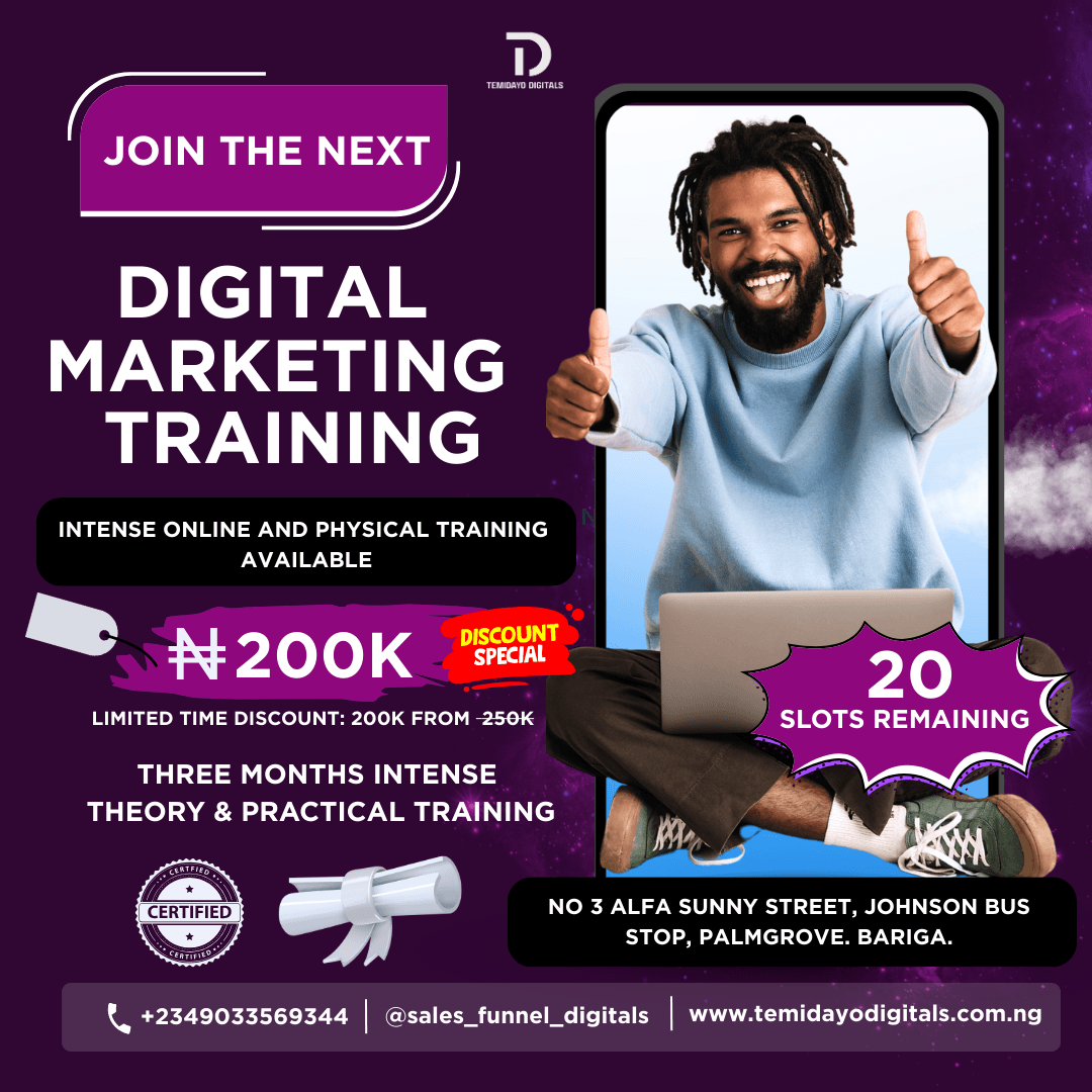 Temidayo Digitals is a creative digital marketing agency that helps businesses grow online through expert strategies in ads, SEO, content creation, and sales optimization. We provide tailored marketing solutions, training, and consulting to help brands increase visibility, drive traffic, and generate real results.